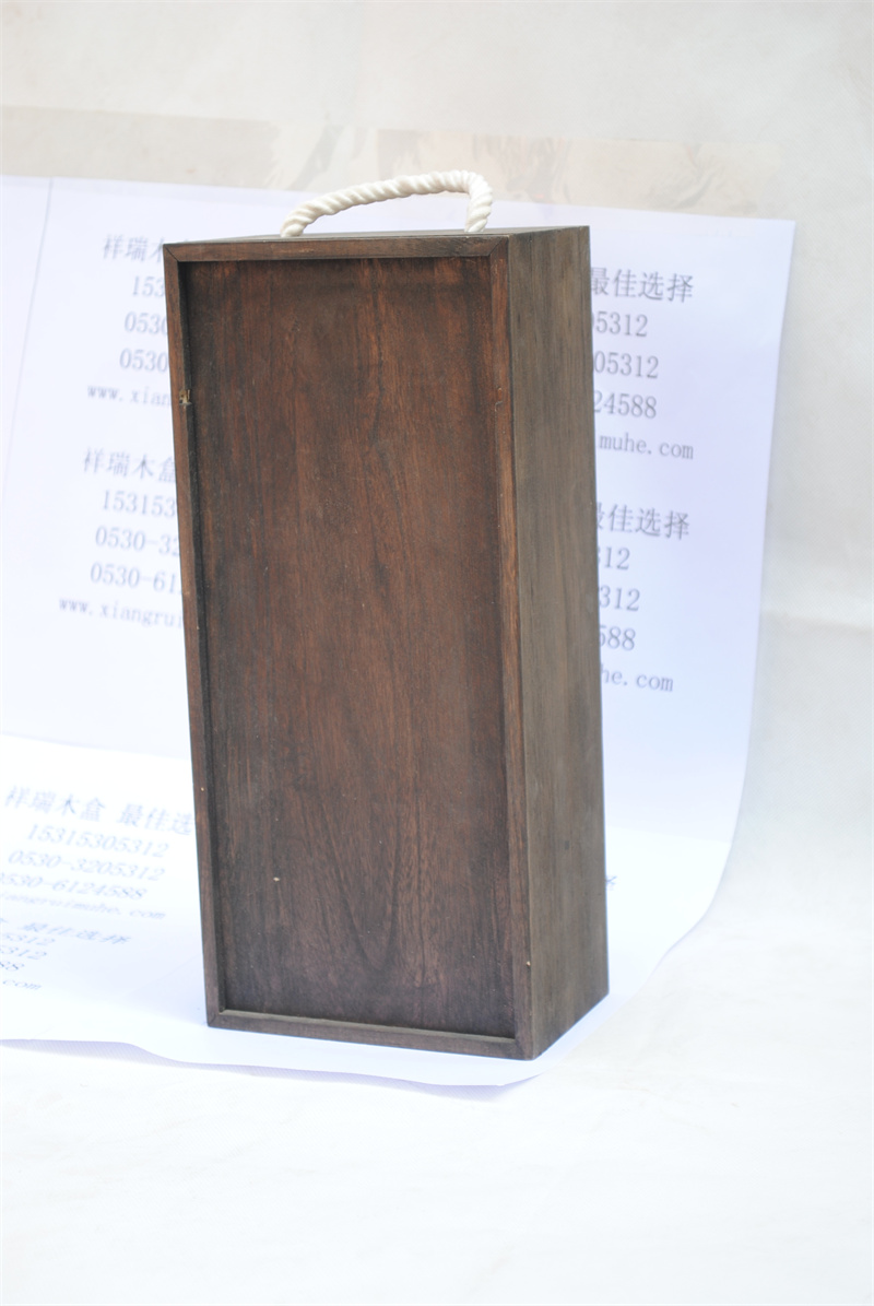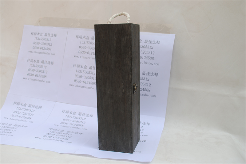 火燒碳化色單只裝木紅酒盒:用料多為實木或膠合板,成型后,用高溫火燒,使木質(zhì)表面碳化成色,也可以做各種顏色。