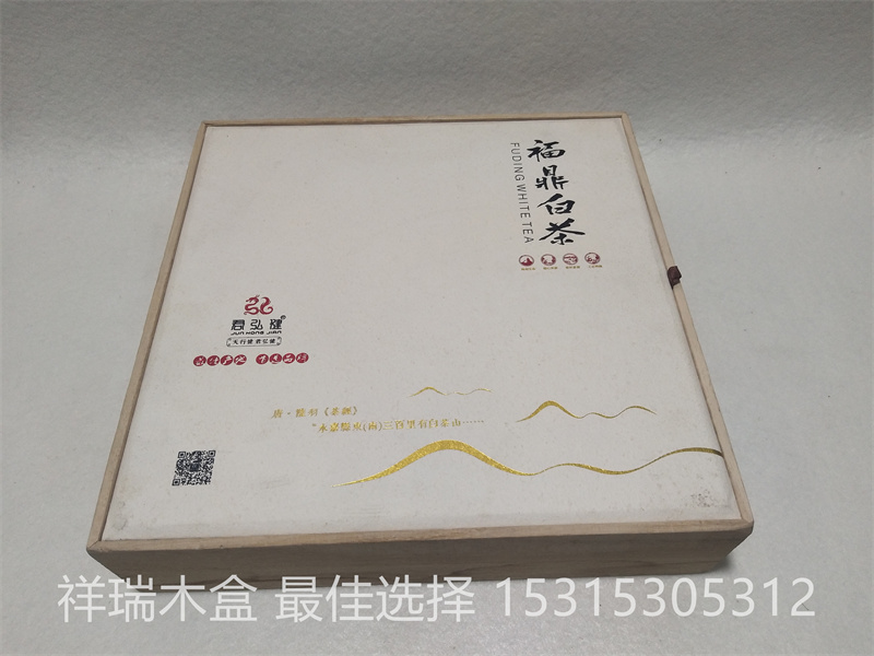 福鼎白茶單圓餅包裝木禮盒:實木配卡紙,卡紙烙金或雕刻,內襯有紙托。